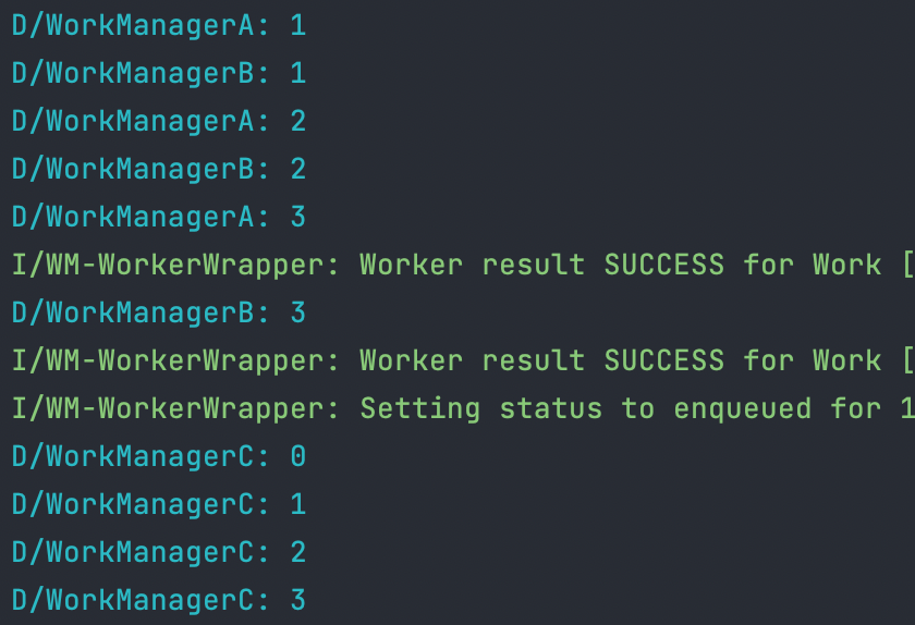위와 같은 WorkManager가 B, C가 있다고 가정해보자.