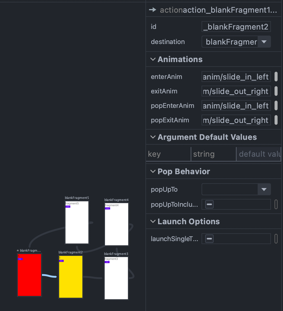 4 -> 5 로 가는 화살표를 클릭한 다음 아래와 같이 Pop Behavior에서 popUpTo에서 가고 싶은 프래그먼트를 설정하면 끝!