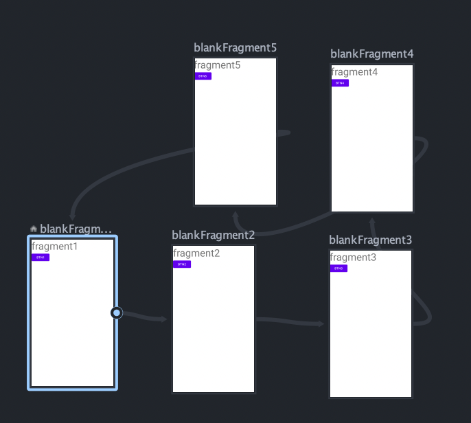 위의 게시물에서 정리했던 그대로, navigation파일을 만든 후 예시 프래그먼트를 5개 만들어보자.
