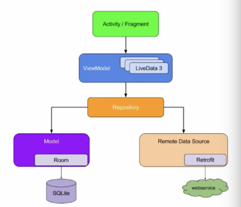 위와 같이 Android Architecture Components를 활용하여 관심사를 분리하고 개발하기를 권장하고 있다.