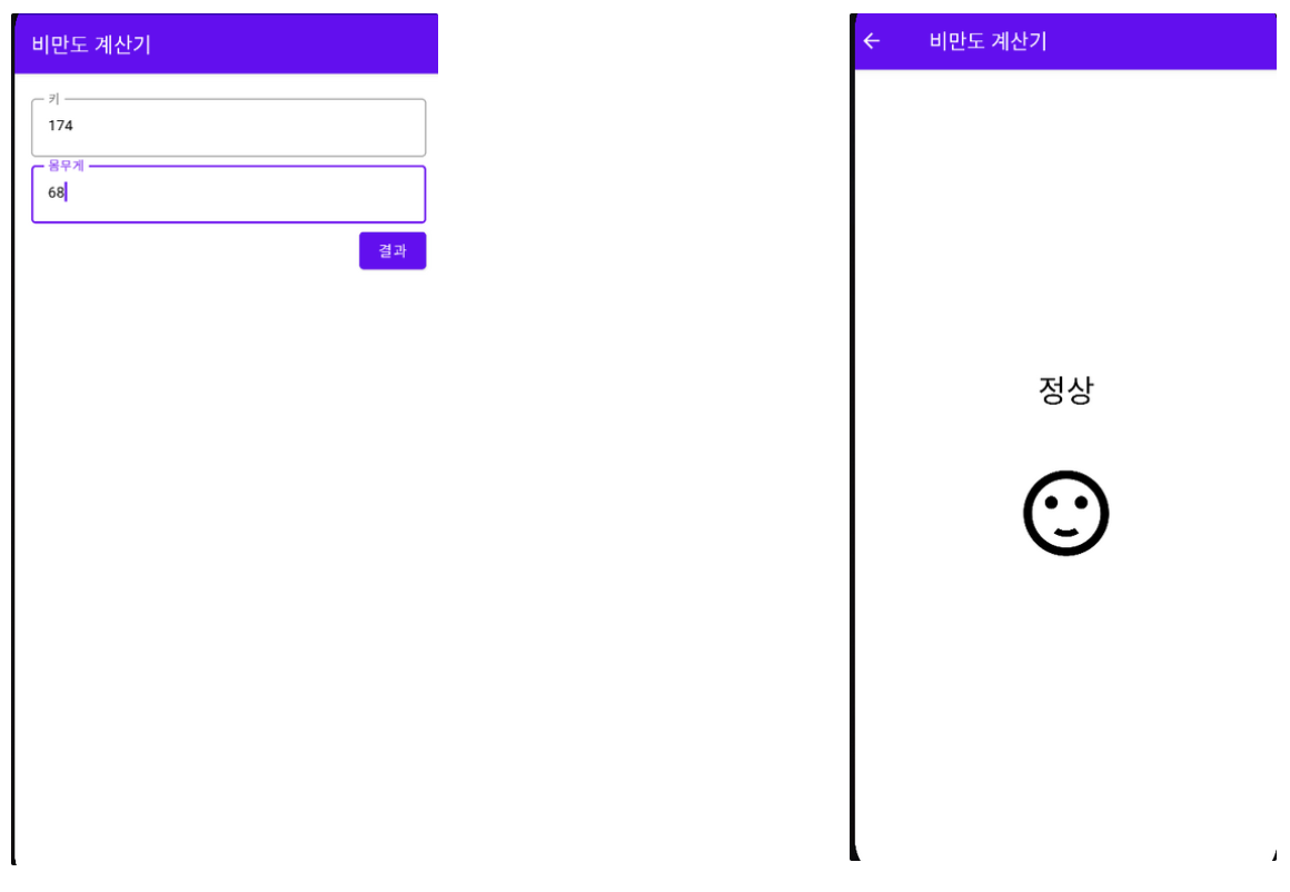 또한, bmi계산을 위한 키와 몸무게 값을 콜백으로 넘겨주어 계산 후 두 번째 화면으로 navigation으로 넘겨준거까지 체크하고 가면 좋을 것 같다!