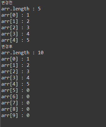 arr=tmp  //참조변수 arr이 새로운 배열tmp를 가르키게 된다.