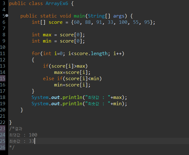 1. 정해진 배열에서의 최댓값 최솟값 구하기 프로그램을 살펴보자.