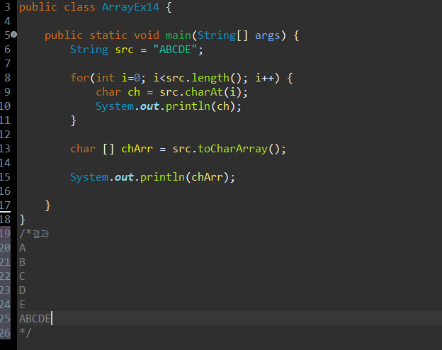 char ch = str.charAt(3) ; //문자열 str의 4번째 문자 'D'를 ch에 저장