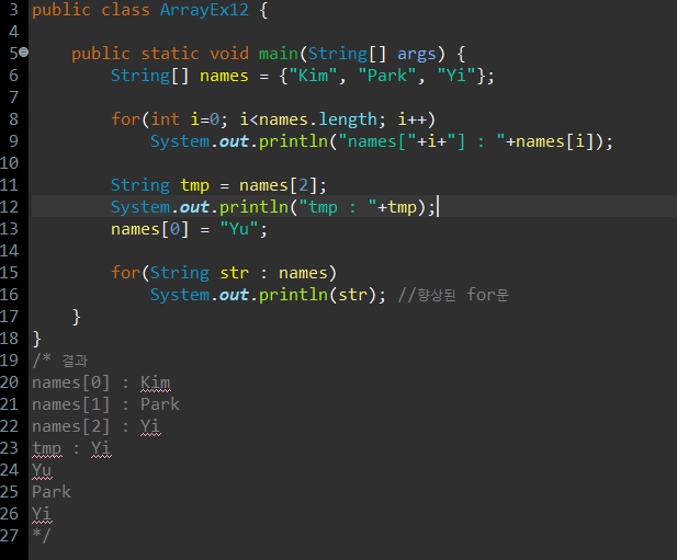 String[] name = {"Kim", "Park", "Yi"} ; new String을 생략하고 초기화 할 수 있음