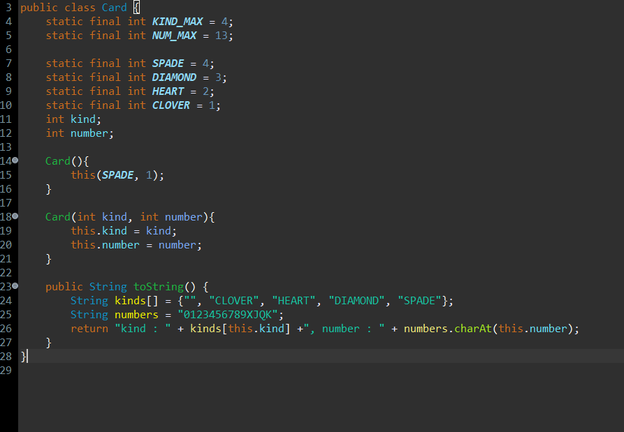 Card클래스를 크기가 52인 배열로 처리하였다.