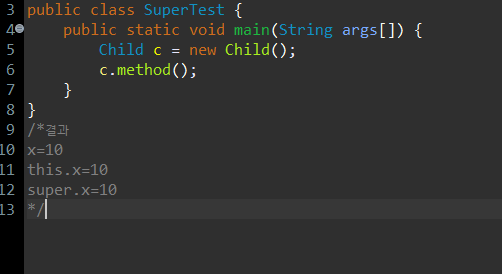 또한, super를 통해 상속받은 멤버를 참조하는데 사용하여 호출할 수 있다.