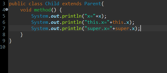 이 경우에는 super.x와 this.x는 서로 다른 값을 참조하게된다.