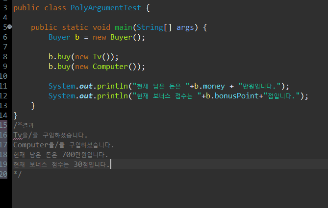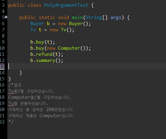 따라서 메소드의 매개변수에 다형성을 적용하여 아래와 같이 하나의 메소드로 간단히 처리해야 한다.