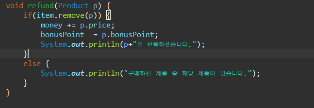 remove메소드를 통해 구입한 제품을 환불하는 기능을 추가하였다.