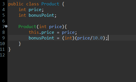그리고 Product클래스에 price와 bonusPoint가 선언되어 있기 때문에