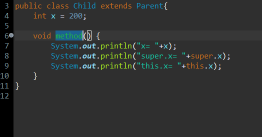 자손 클래스 Child에 선언된 인스턴스변수 x와 조상 클래스 Parent로부터 상속받은 인스턴스변수 x를 구분하는데
