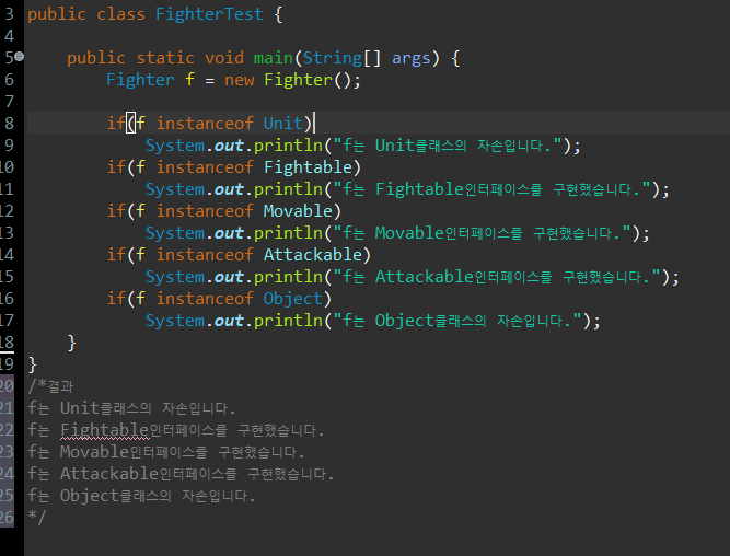 실제로 Fighter클래스는 Unit클래스로부터 상속받고 Fightable인터페이스만을 구현했지만,