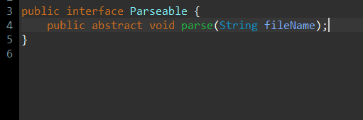 구문분석을 수행하는 기능을 구현할 목적으로 추상메소드 parse(String fileName)을 정의했다.