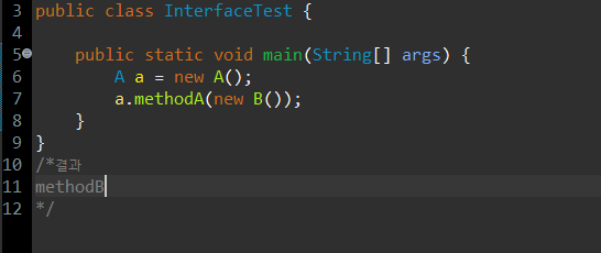 이제 클래스 A는 methodA(I i) { i.methodB() ; } 이렇게 B대신 인터페이스 I를 사용해서 작성할 수 있다.