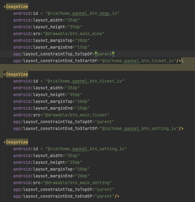 이번에는 아래쪽에 속해있기 때문에 추가로 Top_toBottomOf 를 걸어주면서 적절한 위치로 설정하였다.