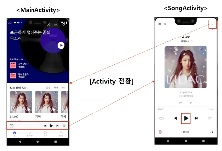오늘은 FLO앱에서 MainActivity에 있는 음악을 누르면 SongActivity로 전환하는 것을 구현해보자.