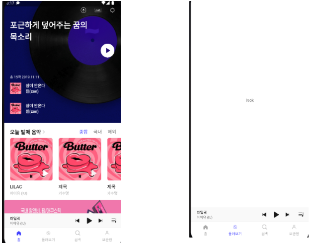 메인엑티비티 안에 있는 메인프레임에서 HomeFragment -> LookFragment 로 바뀌는 것을 확인할 수 있다.