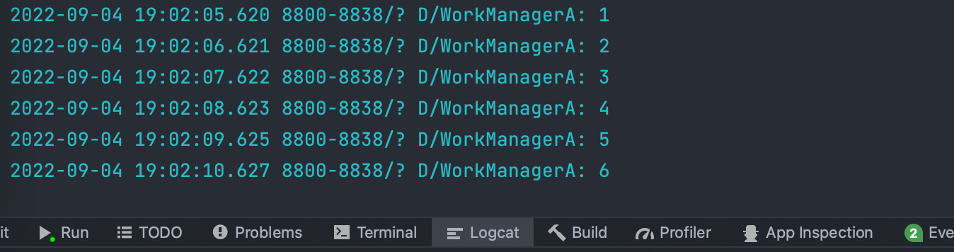Log.d("WorkManagerA", "$i")