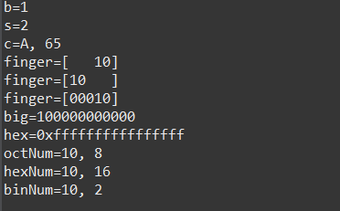 마지막 문장을 보면, 10진수를 2진수로 출력해주는 지시자는 없기 때문에,